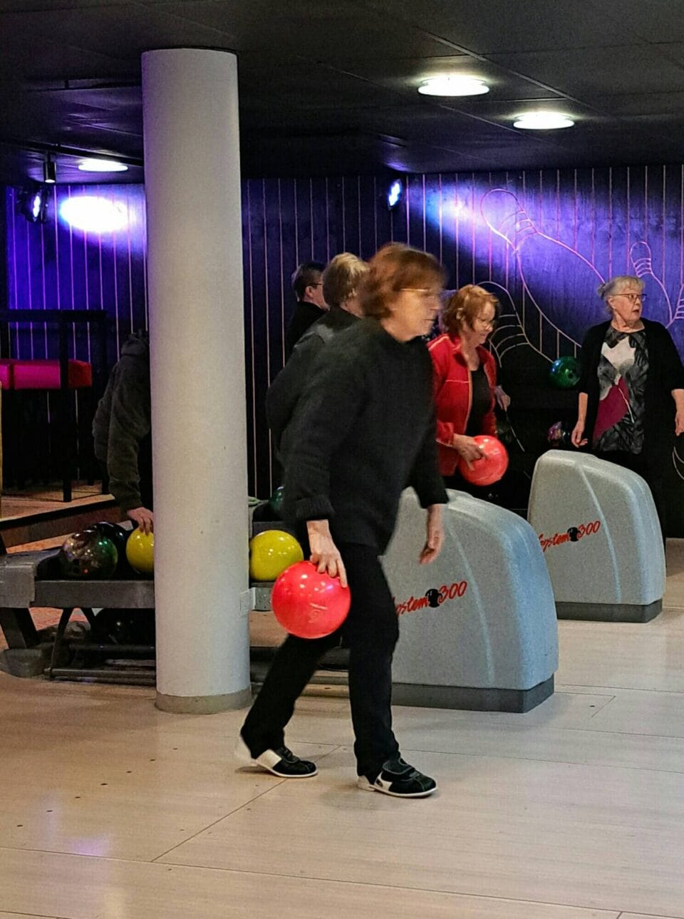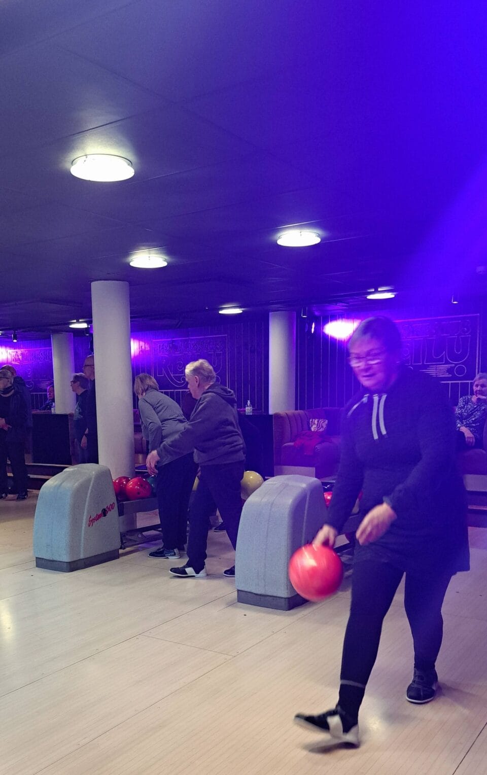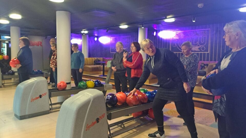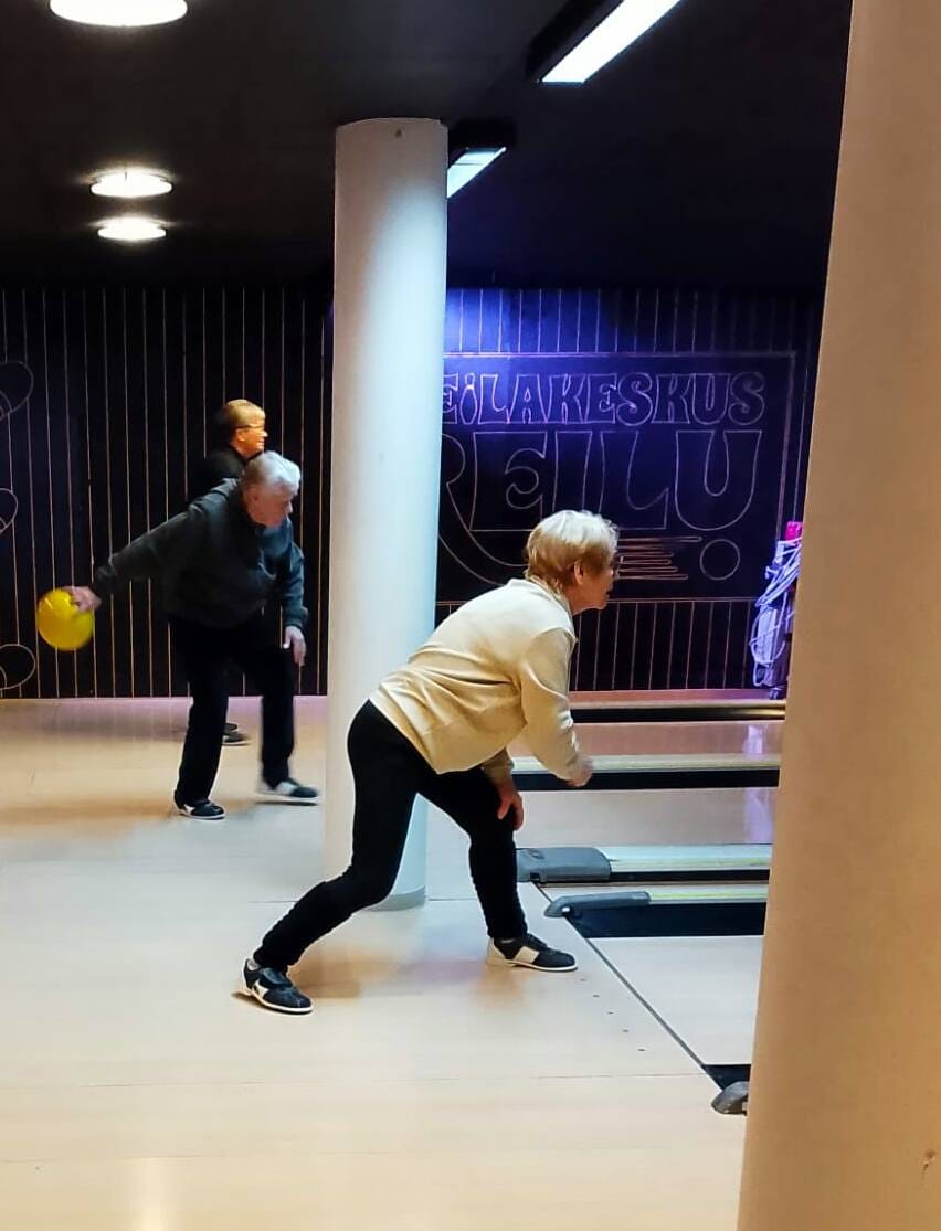 Yhdistyksemme jäseniä tutustumassa keilauksen saloihin Keilakeskus Reilussa.